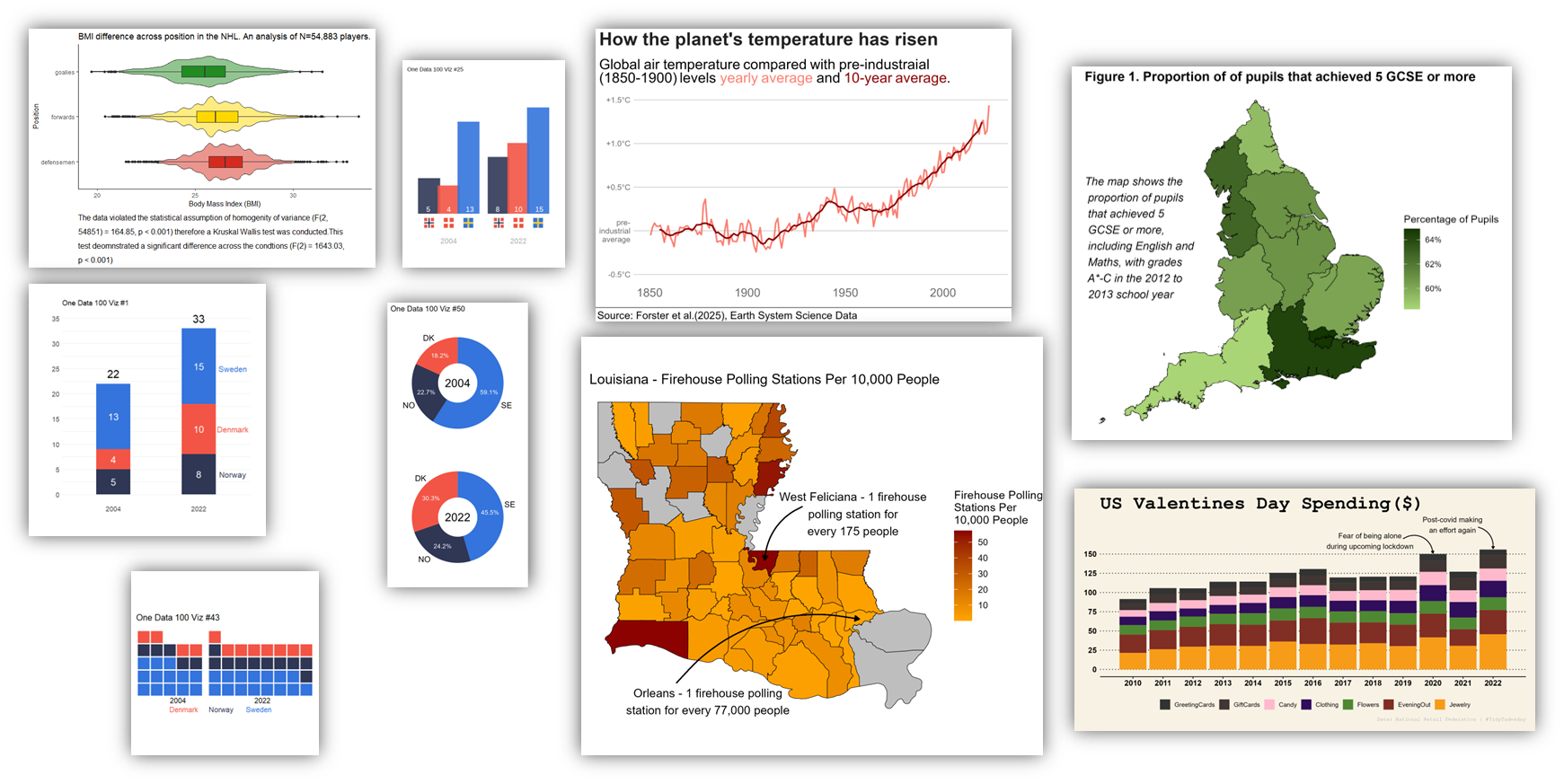 I never truly understand my data until I can see it. Relationships between variables, differences between groups, location data, all can be visualised quickly and effectively using R. Here are a few of my favourites that I’ve made in R over the years: