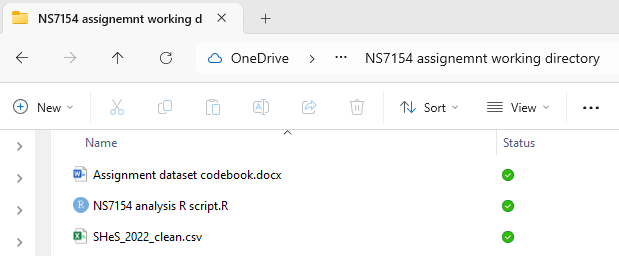 Create a folder for this module, e.g., NS7154 assignment working directory, and place your dataset and codebook in that folder.