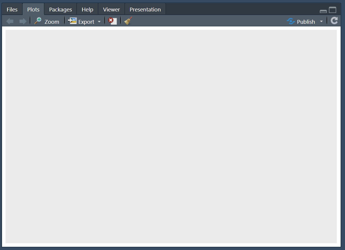 Running the above you’ll see a blank canvas in the bottom right hand RStudio screen. This is where we’ll build our plot. Adjusting this screen will change the size of the graph, so keep it to around a quarter of your overall screen so that your graph is viable and of a reasonable aspect ratio.